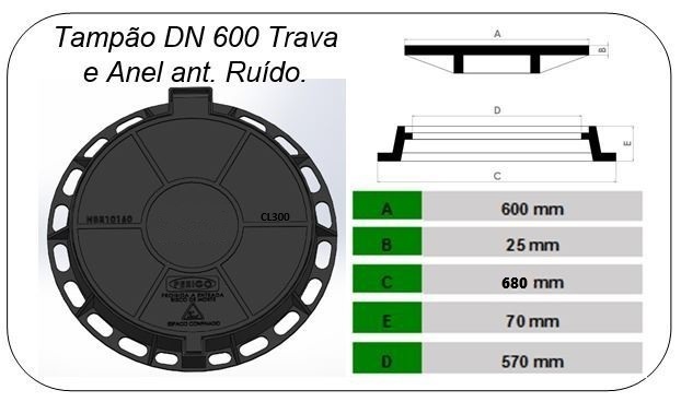Tampão FOFO DN 600mm Articulado e Travas com Anel Anti-Ruido / Classe: D400